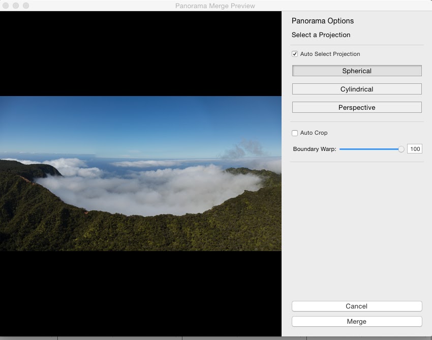 This new feature provides another approach to handling the irregular boundary of panoramas. The feature analyzes the boundary and warps the image so that its edges fit a rectangular frame. In other words, its all done for you on the fly…quick easy and effective. ONCE AGAIN THANK YOU LIGHTROOM!